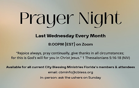Just as fellowship, communion, and unity are highly prioritized at City Blessing Ministries, so is the attention we give to the prayer and ministry of the Word.